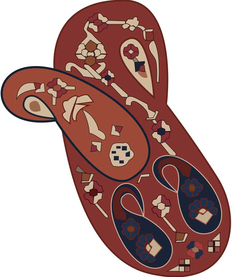 For some interpretations the term ‘Pregnant Boteh’ makes sense, but if the secondary boteh break through the larger one’s outline, ‘mother and Infant’ would sound much better. The latter occurred mostly on large repeats such as in Khamseh designs.